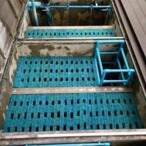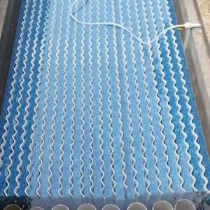 2. Xếp dọc 1 tấm to hết chiều dài bể lọc, đặt 1 tấm nhựa thông minh lượn sóng, lại xếp tiếp 1 tấm AC Filter Mat, cứ như thế cho đến hết chiều ngang bể.